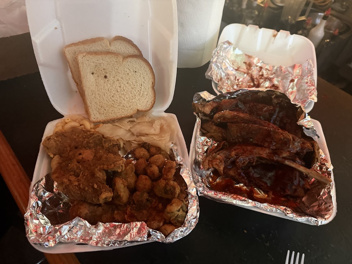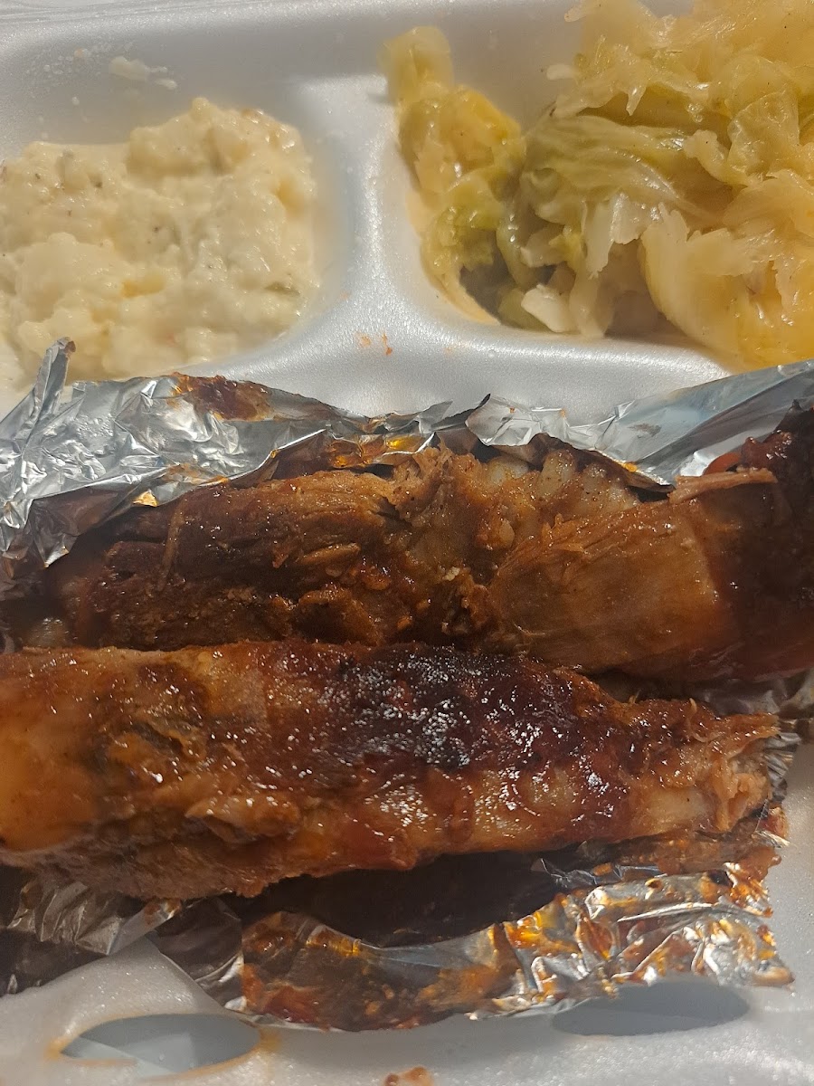 “ I hate to post a 5 star review because I’m selfish. Excellent bbq ribs. Probably the best I’ve had in a while. Also had the wings that were phenomenal. Fri d okra cabbage and Mac and cheese are on point. Had the bbq pigs feet, not my thing but were great. Picked up fried pork chop plate for my girlfriend and it’s great. Unassuming hole in the wall, but a great personable Christian man runs the place. Check it out for sure. ”